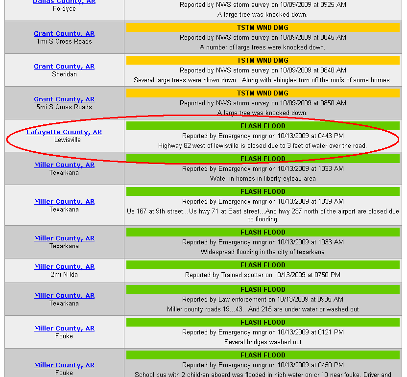 While driving from Arizona to Florida, I encountered some crazy heavy rains in east Texas which got even more intense in Arkansas and downright crazy in Mississippi. Listening to local radio, I learned that flash flood warnings had been issued for several counties, but since I had no idea where those counties were I just crossed my fingers and kept driving.